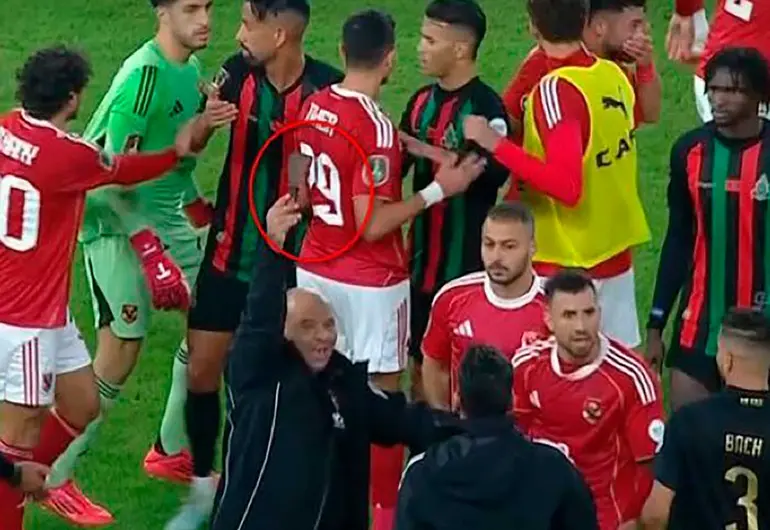 Aunque el lanzamiento de la navaja ya suponía un hecho gravísimo, lo que ocurrió segundos después elevó la polémica. Imágenes del partido muestran a jugadores del FAR de Rabat intentando impedir que el cuerpo arbitral viera el arma. Algunos se interpusieron entre los futbolistas de Al Ahly y el árbitro para bloquear su camino, lo que generó aún más desconcierto entre quienes seguían la transmisión.