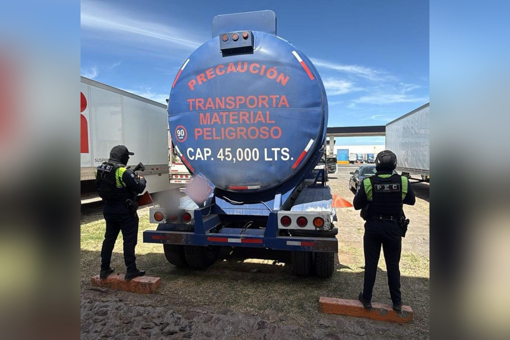 Como parte de la estrategia estatal de Coordinación Operativa de la Nueva Fuerza de Inteligencia Anticrimen (CONFIA), los oficiales realizaban labores de patrullaje y vigilancia sobre la carretera Celaya–Dolores Hidalgo, donde observaron el remolque tipo pipa color azul, con placas del Servicio Público Federal, estacionado sin tripulación ni señales de resguardo.
