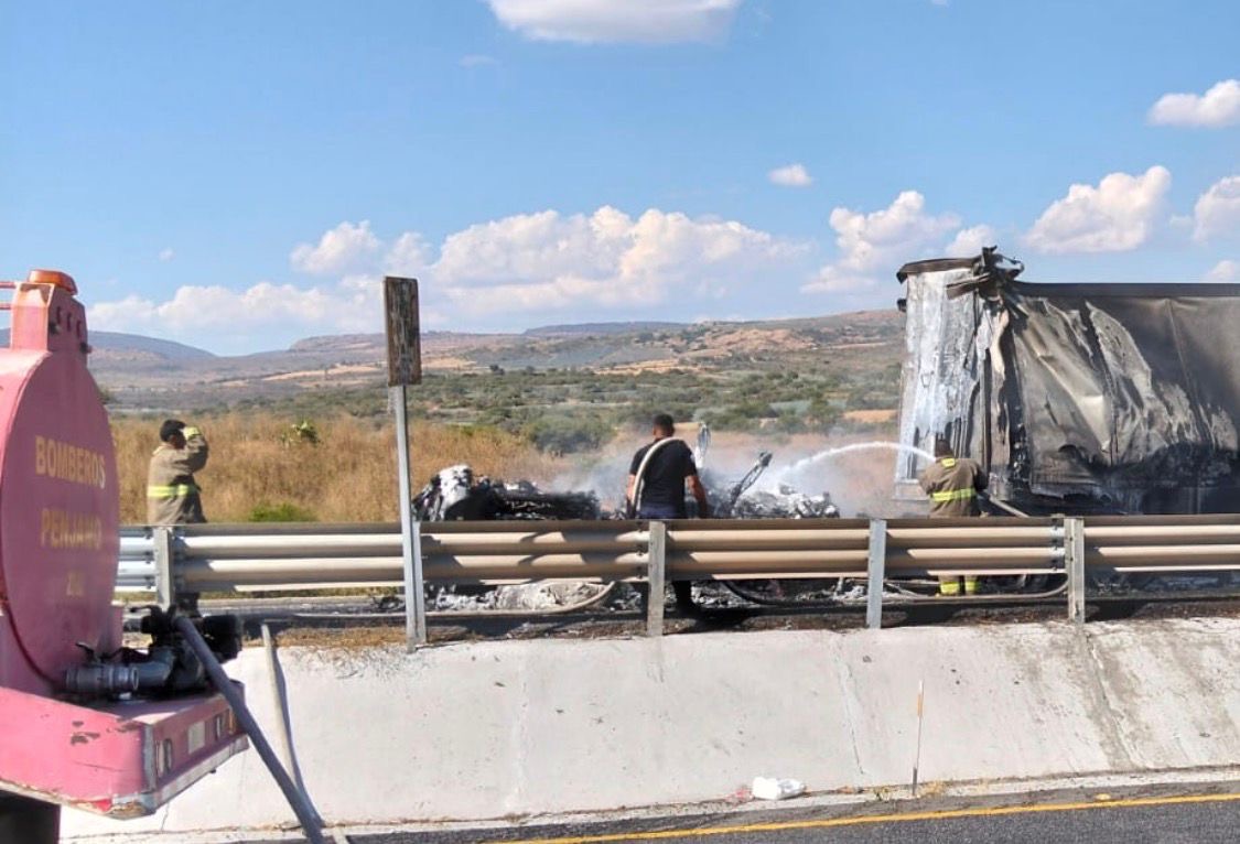 En Guanajuato, el caso ocurrió en el tramo Pénjamo-La Piedad, donde un tráiler fue atravesado e incendiado cerca de la zona de la tequilera, adelante de Churipitzeo.