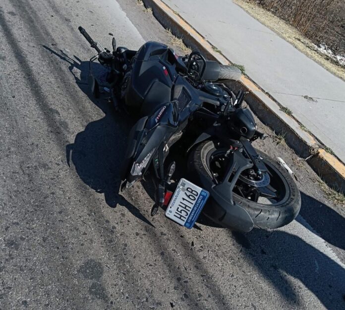 A unos metros se encontraba una motocicleta tipo pista, de color negro, con daños severos.