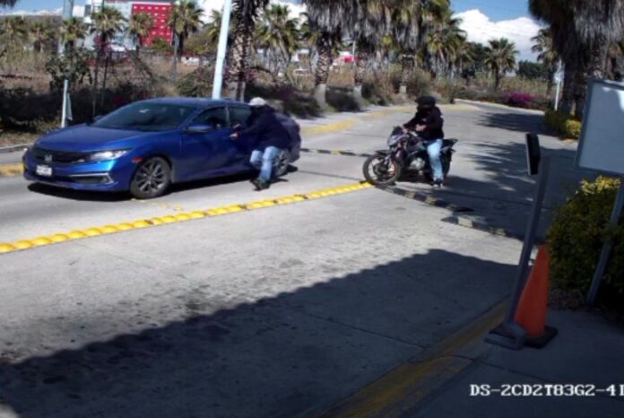 De acuerdo con las imágenes, los presuntos asaltantes interceptaron al conductor cuando este se disponía a ingresar al fraccionamiento.