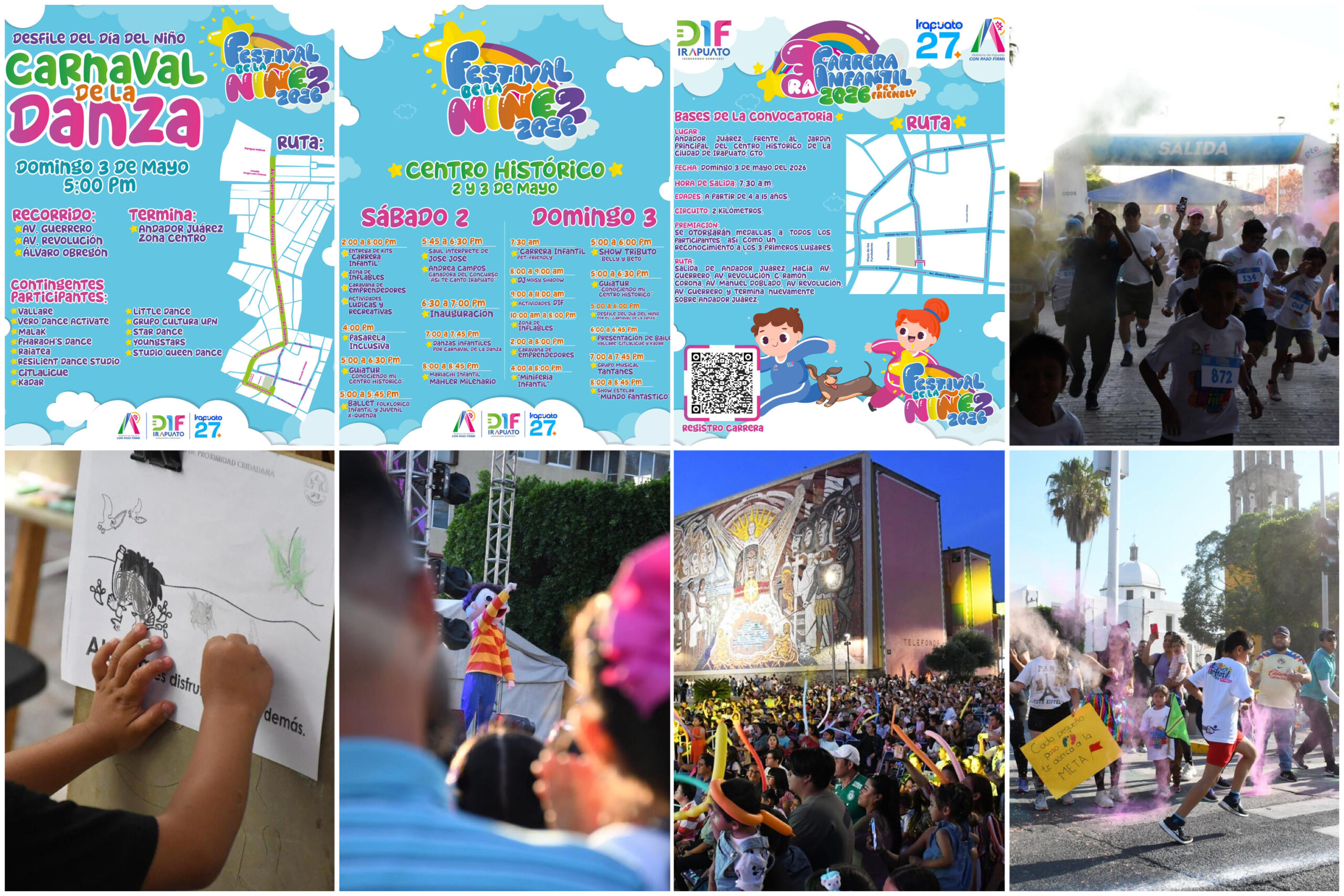 Irapuato, Gto.– Con el objetivo de fortalecer la convivencia familiar y promover el desarrollo integral de niñas y niños, el Gobierno de Irapuato, a través del Sistema DIF Municipal, llevará a cabo la cuarta edición del Festival de la Niñez 2026, el sábado 2 y domingo 3 de mayo en el Andador Juárez del Centro Histórico.