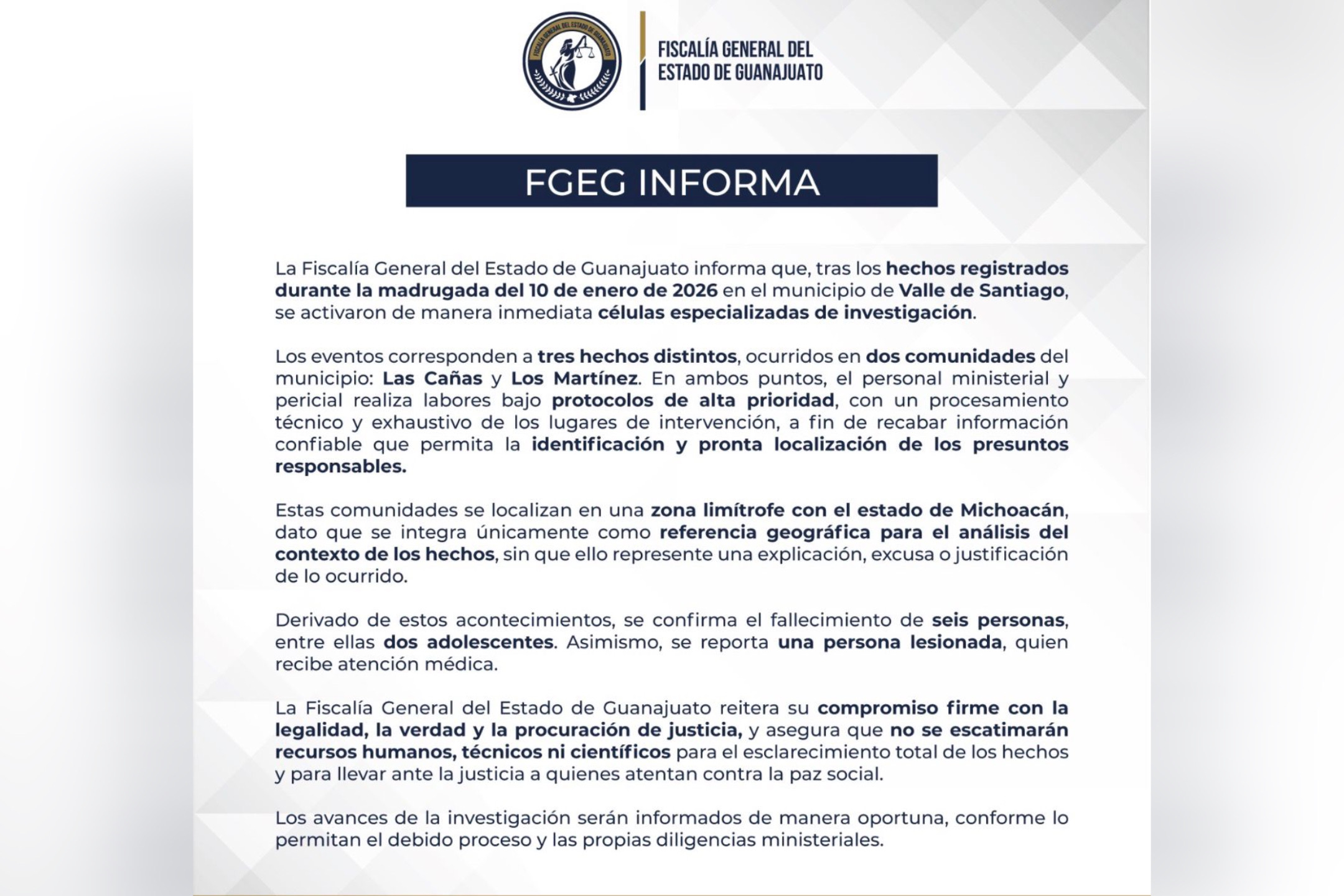 Las autoridades aclararon que las comunidades donde ocurrieron los ataques se localizan en una franja territorial colindante con Michoacán, dato considerado únicamente para el análisis contextual de los hechos y no como un factor causal.