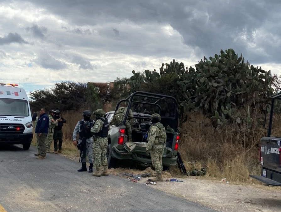 Los elementos lesionados fueron atendidos por la Coordinación Municipal de Protección Civil y trasladados en código amarillo al Hospital Militar Regional de Irapuato, donde permanecen bajo atención médica.
