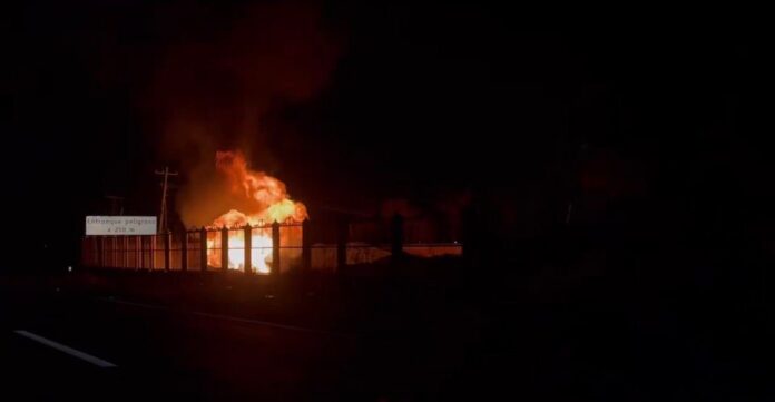 PÉNJAMO, GTO.- La quema controlada de hidrocarburo en un ducto de Petróleos Mexicanos dañado, continúa en el municipio de Pénjamo, sobre la carretera federal 1110, a la altura de la vidriera de Corralejo, como parte de los trabajos para reparar una tubería dañada.