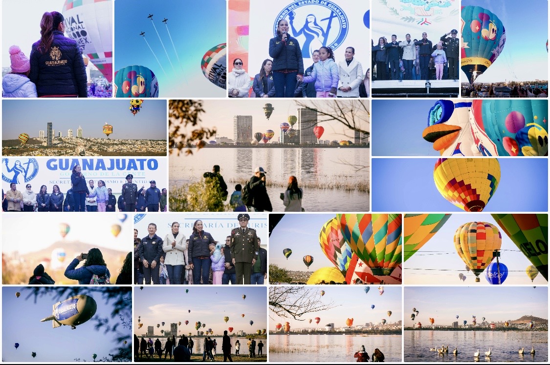 “Eventos como éste nos convocan a reunirnos en familia, a sorprendernos y admirarnos de la magia de los colores de estos 200 globos que estarán surcando los cielos de León”, dijo la Mandataria Estatal, acompañada de Alejandra Gutiérrez Campos, Presidenta Municipal de León.