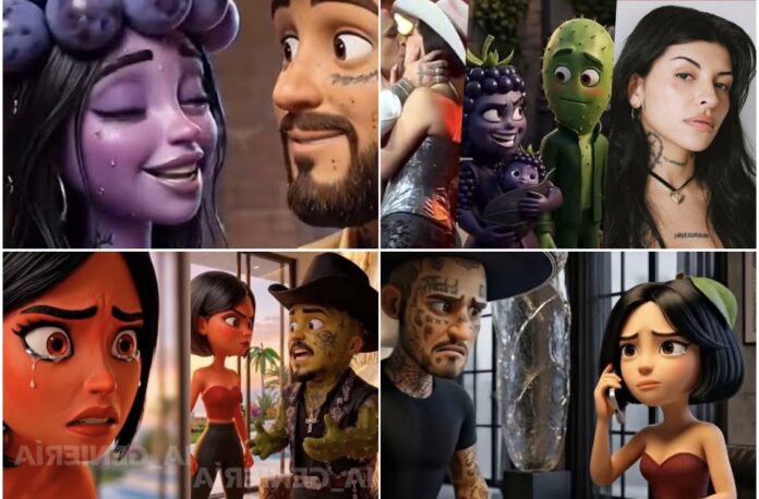 Estos contenidos digitales, creados con inteligencia artificial, transforman a los famosos en frutas con características humanas, recreando sus historias personales con tintes dramáticos, celos, traiciones y romances, al estilo de una telenovela.