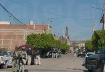 PÉNJAMO, GTO.- Elementos de la Dirección de Seguridad Pública de Pénjamo fueron retenidos para revisión este sábado, como parte del fuerte operativo desplegado por fuerzas federales y estatales en sus propias instalaciones. El despliegue fue encabezado por la Fiscalía, la Secretaría de la Defensa Nacional, Guardia Nacional y Fuerzas del Estado, quienes arribaron de manera … Sigue leyendo Fuerzas federales y estatales despliegan operativo para revisión de policías en Pénjamo