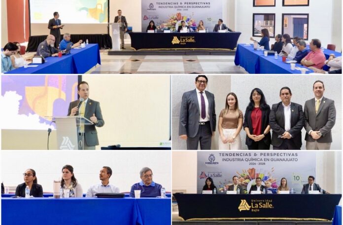 León, Gto.- Con el objetivo de fortalecer la competitividad de los sectores productivos, la Secretaría de Economía participó en el Foro “Tendencias y Perspectivas de la Industria Química en el Estado de Guanajuato”, organizado por la Universidad La Salle Bajío, donde se definieron las prioridades y líneas de acción que orientarán el desarrollo de esta industria estratégica rumbo al periodo 2026–2028.