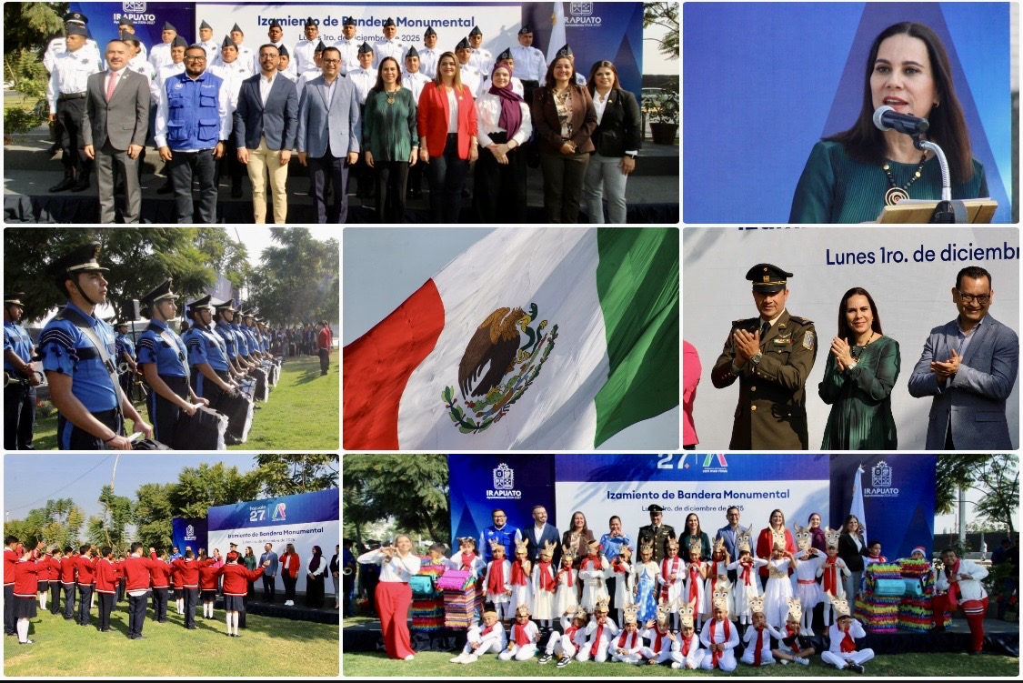 Lorena Alfaro García, presidenta de Irapuato, destacó que esta ceremonia fue especial por ser la última del 2025 y señaló que, con este acto, se refrenda el amor por México y se da la bienvenida a diciembre, un mes cargado de emociones, tradiciones y festejos.