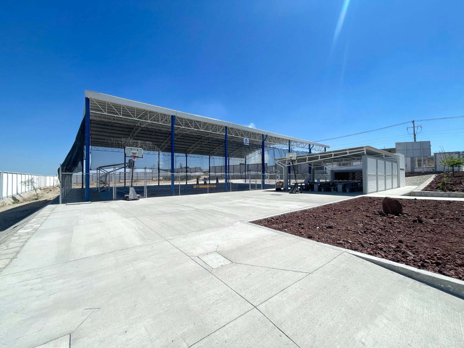 Adicionalmente, se construyó una cocina, un comedor abierto y una cancha de usos múltiples techada, que permitirá la realización de actividades deportivas, cívicas y recreativas.