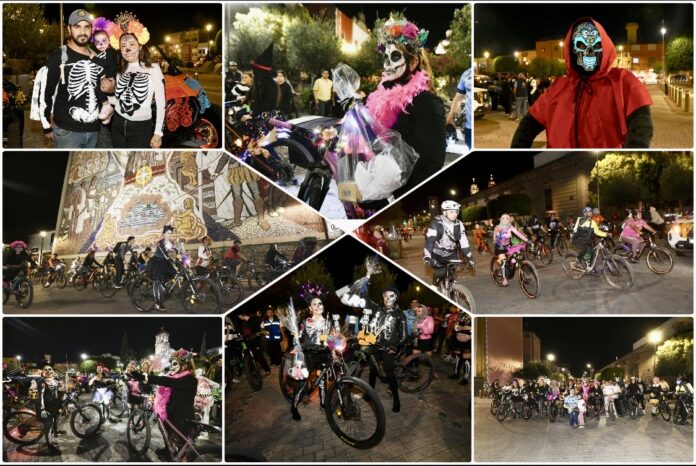 Irapuato Gto.- Con gran éxito se llevó a cabo una nueva edición del Paseo Ciclista “Reviviendo Tradiciones” en el que decenas de participantes recorrieron las principales calles del Centro Histórico caracterizados con disfraces y atuendos alusivos al Día de Muertos.