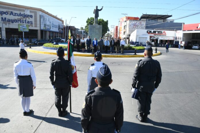 IRAPUATO, GTO.- El Gobierno Municipal de Irapuato, encabezado por la presidenta municipal, Lorena Alfaro García, conmemoró el aniversario del natalicio de Benito Juárez García, frente a su monumento ubicado en la glorieta del bulevar Díaz Ordaz, en un acto que reunió a autoridades, estudiantes y ciudadanía en general, con el objetivo de recordar y difundir el legado del destacado político oaxaqueño.