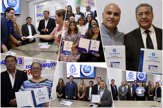 Irapuato, Gto.- La Secretaría de Economía realizó la entrega de 18 Cédulas de Certificación de Competencia Laboral a integrantes de la Asociación de Agentes Inmobiliarios Acreditados del Estado de Guanajuato (AIAG).