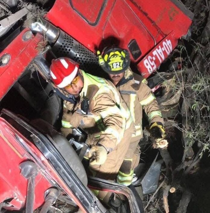 Elementos del Cuerpo de Bomberos acudieron al lugar del accidente y, tras revisar la cabina, confirmaron que el conductor había quedado prensado entre los fierros retorcidos, por lo que ya no presentaba signos vitales.