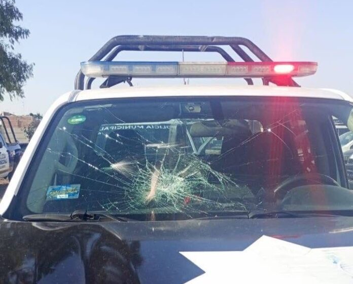 Durante la agresión, un policía resultó lesionado tras recibir un golpe en la cabeza, lo que complicó la atención del reporte inicial.