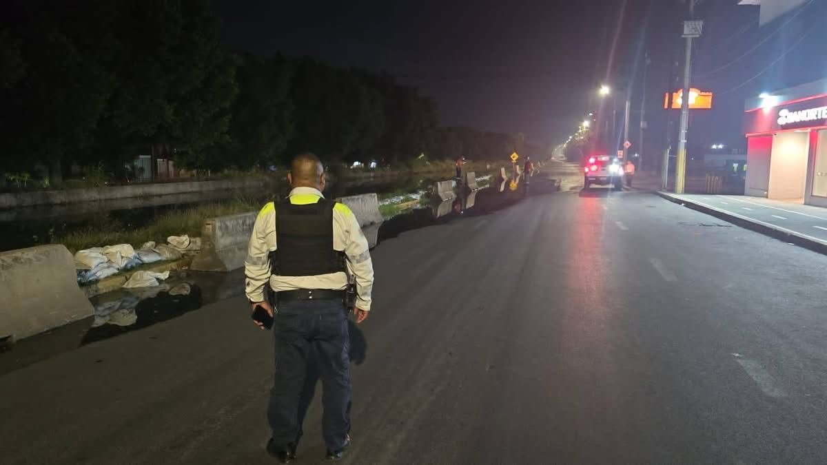 La Secretaría de Seguridad Ciudadana informó que integrantes de Tránsito Municipal implementaron cierres parciales en la avenida Mariano J. García y Guanajuato, a la altura de la glorieta de la Central de Abastos, para evitar accidentes por el encharcamiento.