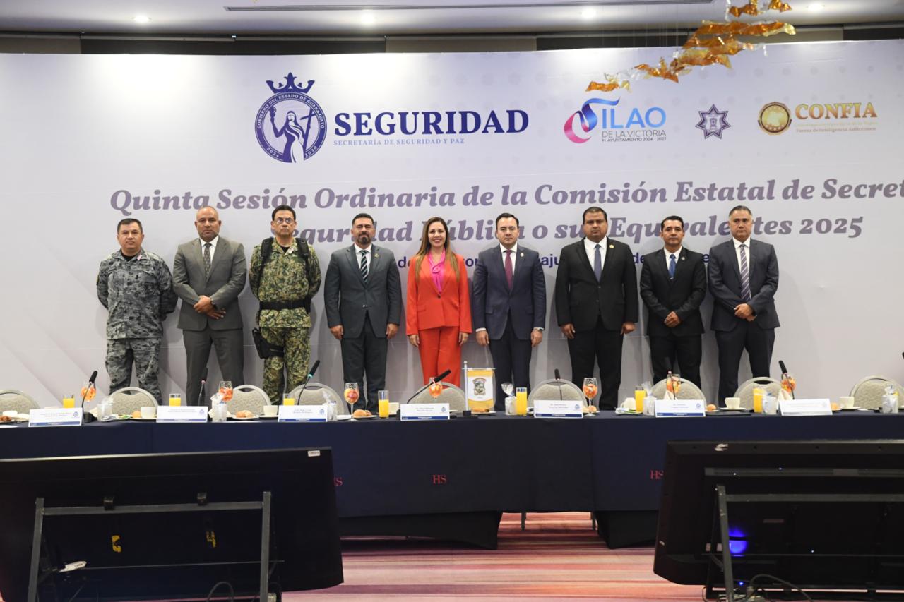 Durante la sesión, destacó la baja sostenida de un 60.7 % del promedio diario de homicidios dolosos en la entidad, gracias al esfuerzo compartido entre autoridades de todos los niveles.