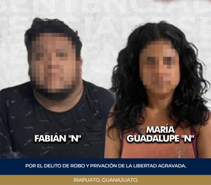 IRAPUATO, GTO.- Fabián y María Guadalupe fueron sentenciados a 10 años y cinco meses de prisión por su participación en un robo y privación de la libertad agravada, ocurrido en Irapuato, informó la Fiscalía General del Estado de Guanajuato.