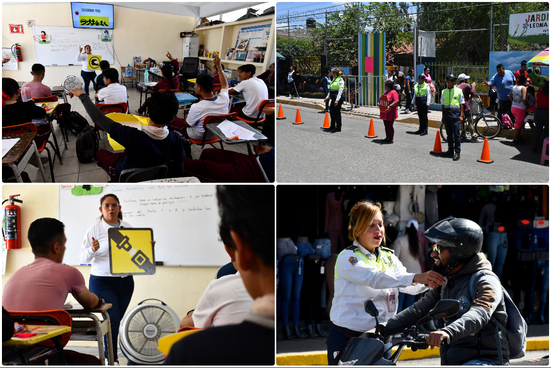 Durante estas charlas, se refuerzan temas como el uso del casco protector certificado, viajar solo dos personas en motocicleta, respetar los límites de velocidad y portar la documentación requerida por el Reglamento de Tránsito.De enero a la fecha, se han realizado pláticas en 26 planteles educativos, beneficiando a más de tres mil 800 madres y padres de familia comprometidos con la seguridad vial de sus hijas e hijos.