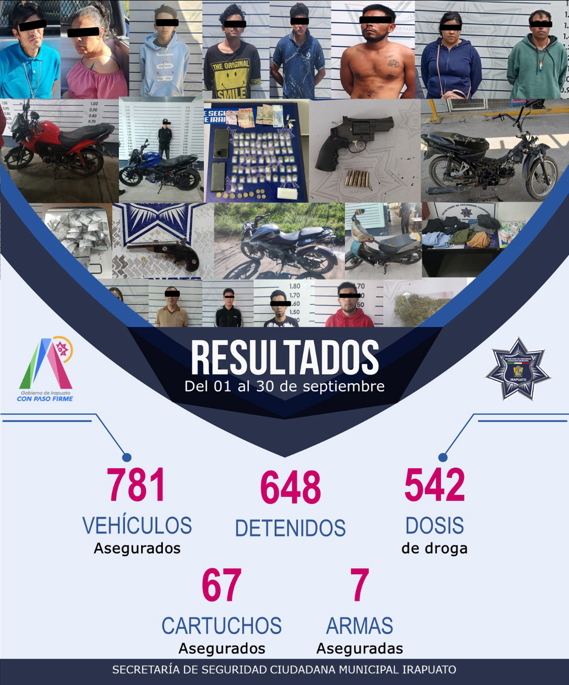 Irapuato., Gto.- Como resultado de las acciones para prevenir y combatir actividades delictivas y conductas antisociales, el Gobierno Municipal detuvo durante el mes de septiembre a 781 personas y atendió a más de 23 mil ciudadanos con 429 acciones de Proximidad Ciudadana.