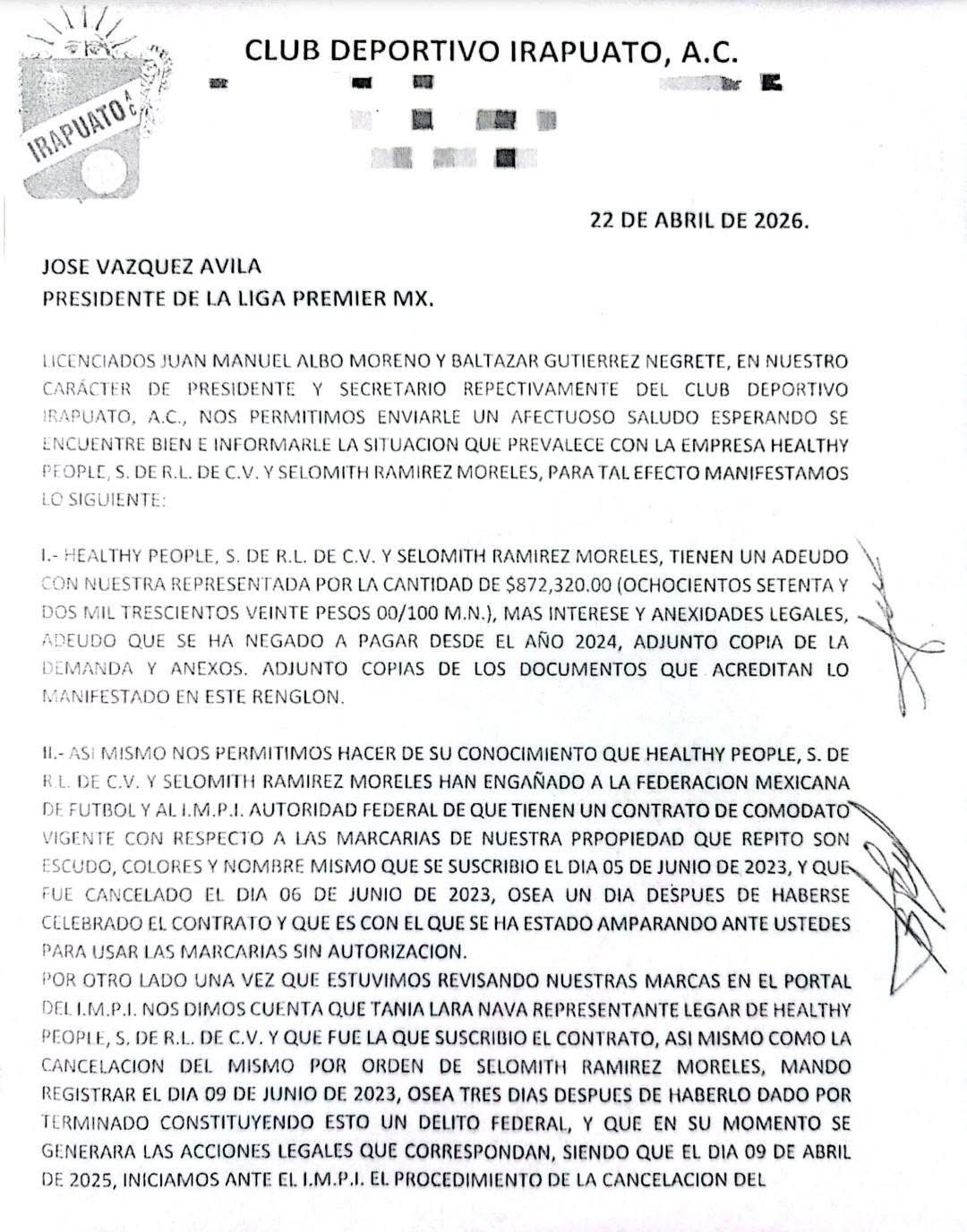 Reportes basados en documentación interna señalan que la empresa “Healthy People”, dirigida por Selomith Ramírez, acumuló adeudos durante el periodo en que el club compitió en la Liga Premier, correspondientes a compromisos financieros no liquidados.